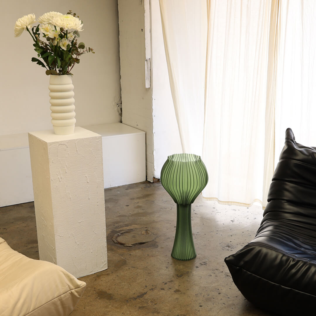 Sustainability is at the heart of my practice. All pieces are 3D printed in-house and made to order. I use renewable and recyclable materials such as plant-based biopolymers (PLA) and sustainable PETG, where available and possible, and if not we ensure we use materials that can be recycled back into usable objects.