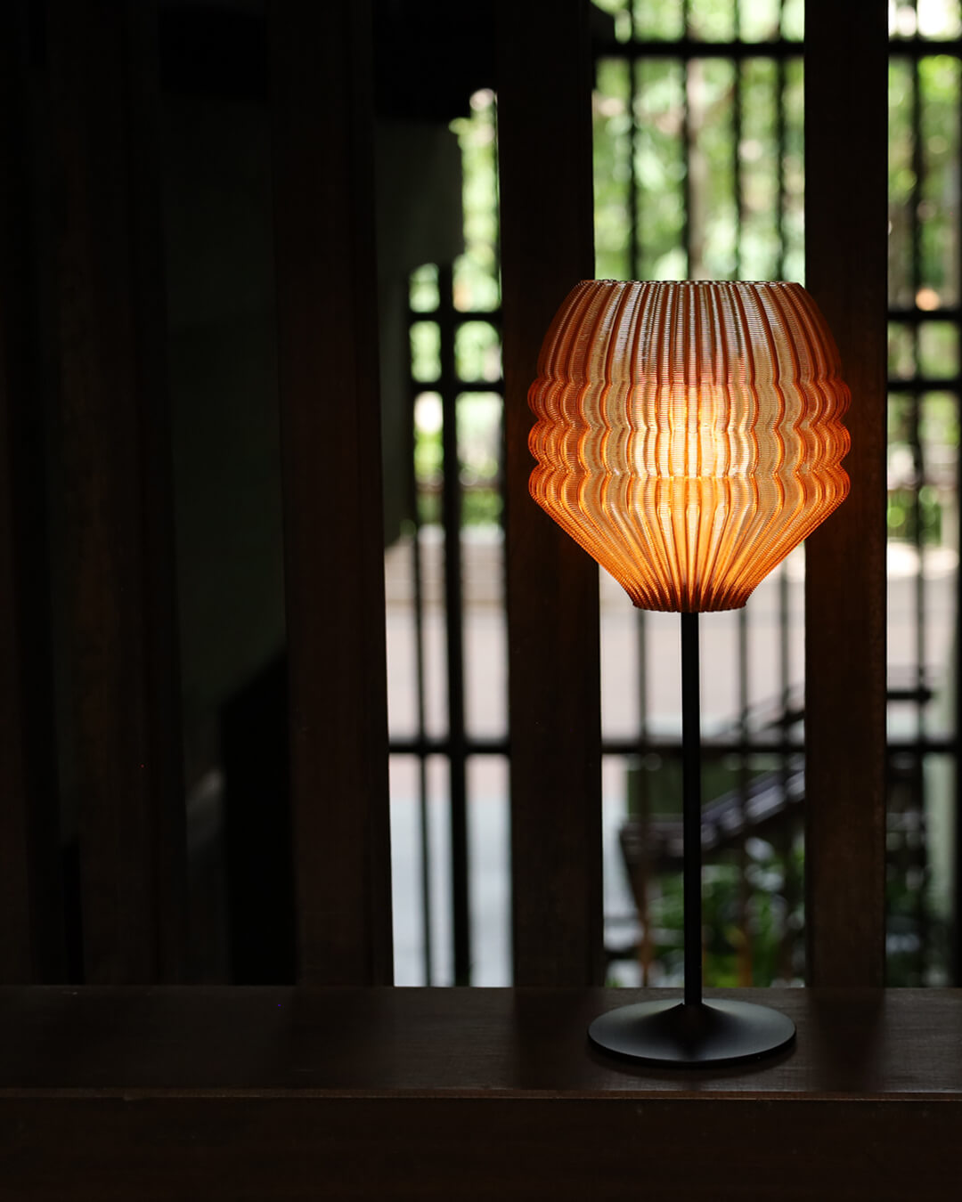 The Bloom Portable Table Lamp is an ‘organic modern’ biophilic lamp that radiates warmth and quiet. Its softly undulating shade is formed by finely layered flutes that wrap around the body in a rhythmic, organic pattern, reminiscent of petals unfurling or gentle waves frozen in motion.